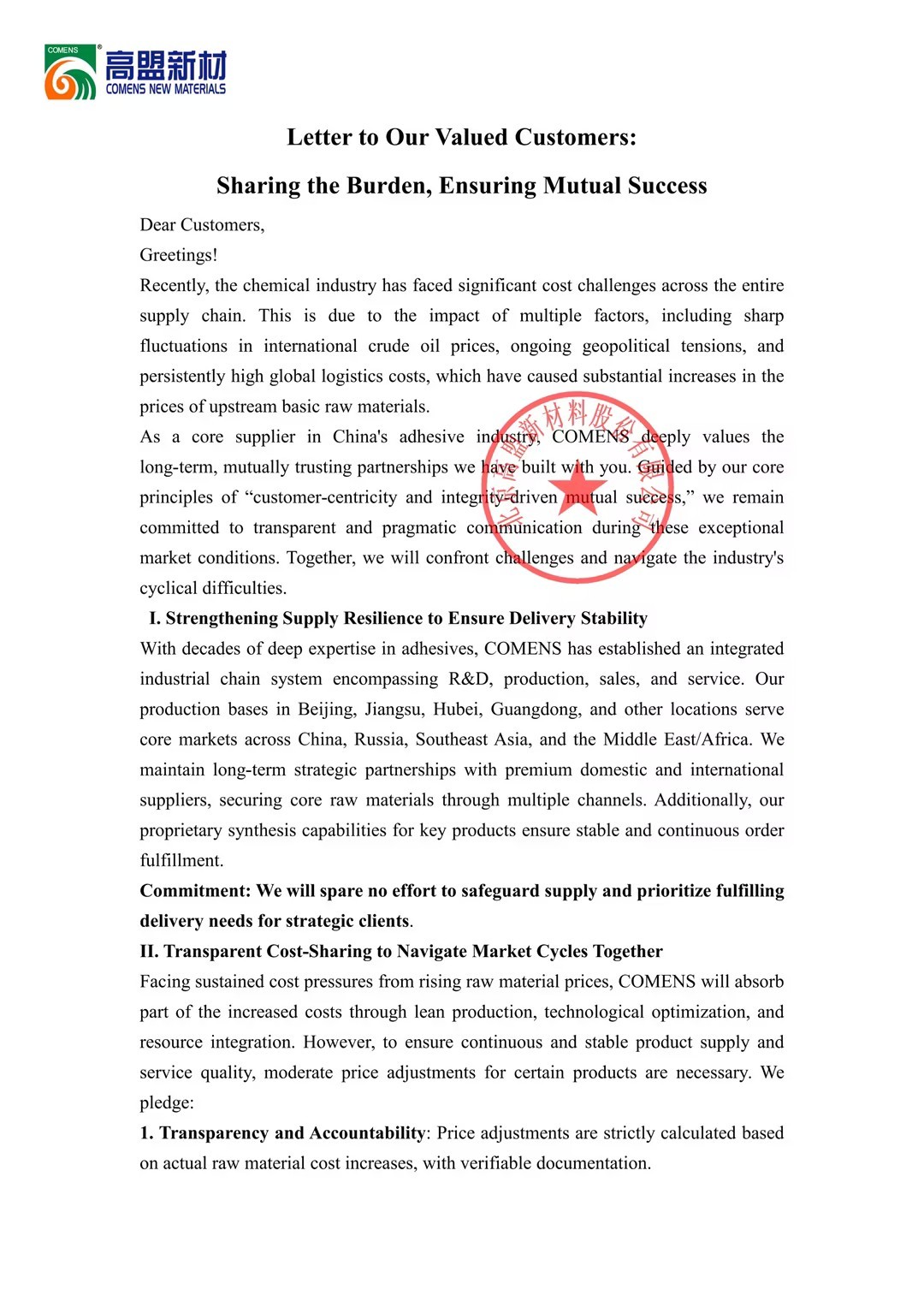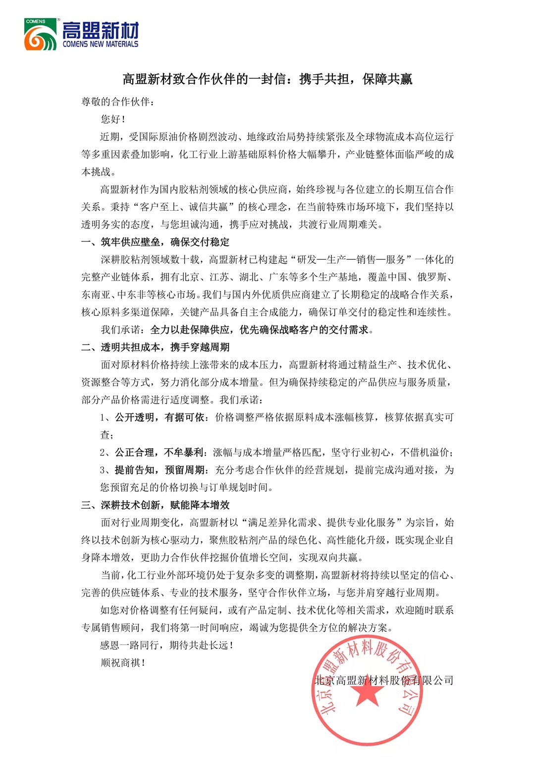 携手共担,保障共赢丨高盟新材致合作伙伴的一封信